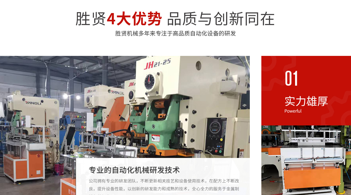 東莞市勝賢機械設(shè)備有限公司,是一家專業(yè)從事金屬制罐包裝行業(yè)的整套自動化設(shè)備和模具開發(fā)、制造與銷售的公司,擁有成熟的技術(shù)和創(chuàng)新開發(fā)能力。我們擁有有一批多年從事設(shè)計、研究開發(fā)的工程師,和設(shè)備、模具制作的技術(shù)人才。不斷推進制罐行業(yè)向高效、環(huán)保、節(jié)能、操作簡易化的方向發(fā)展。 公司主要產(chǎn)品:多次元機械手設(shè)備生產(chǎn):含片盒蓋/底自動生產(chǎn)線,煙盒蓋/底自動生產(chǎn)線,醫(yī)藥盒蓋/底自動生產(chǎn)線,茶葉罐蓋圈/酒罐蓋圈自動生產(chǎn)線,酒罐蓋自動生產(chǎn)線、茶葉罐拍底自動生產(chǎn)線等等。 罐身自動扣骨機生產(chǎn):茶葉罐/酒罐/化妝品罐/內(nèi)衣罐等等. 其中多次元機械手專為兩片盒的生產(chǎn)和三片罐的蓋、底、蓋圈、拍底蓋等的生產(chǎn)而設(shè)計,...